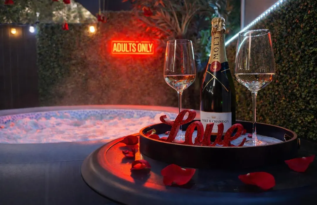 Red Chamber Hot Tub Couples Retreat Amenidades
